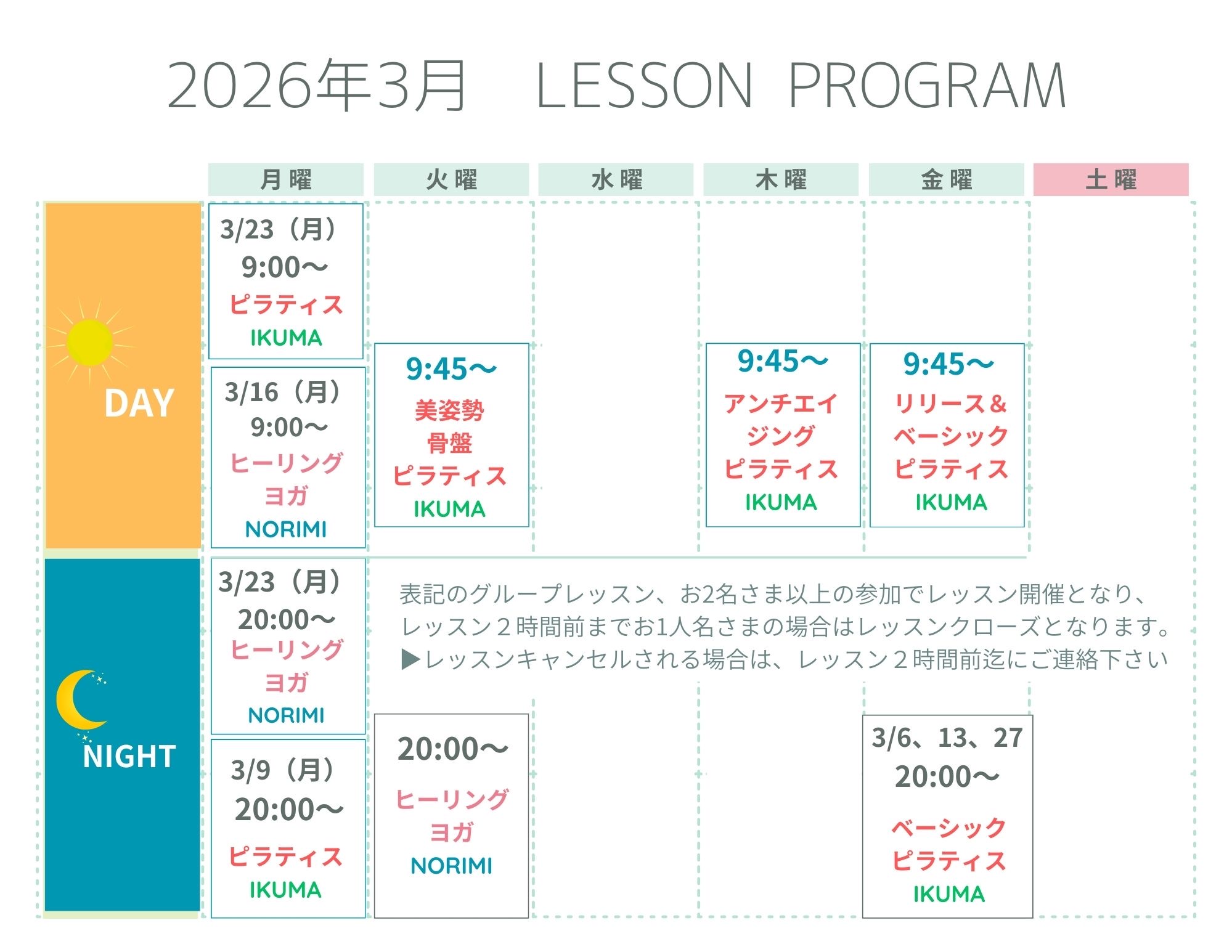 インストラクターが目の届く範囲でのレッスンができるよう、少人数でお一人おひとり、その日の体調をしっかりお聞きしてレッスンをはじめます。リラックスして過ごしてもらえるよう、スタジオの空間作りやアロマなどの効果も生かしています。